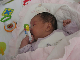 Cheryl is almost two months old. This represents a significant milestone for her. Being born premature with birth weight of 1782g, she has grown very well for the past two months. Her weight is now 3.9kg. She is getting chubbier!